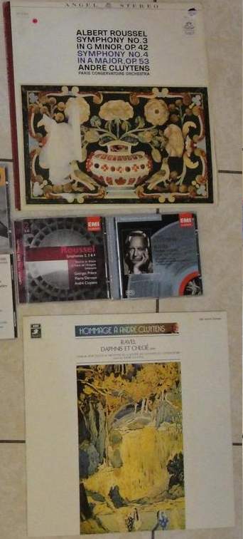 最後是令人幹到翻掉的 ART 轉錄之 EMI FRANCE《世紀名家》系列,克路易坦指揮的《達芬尼與克羅伊》,完全不推薦!『現場氣氛』完全不存在了,音場空間與舞台定位也死光了;音量小聲時樂團縮在正中央當鳥龜,大聲時又跑到喇叭外側去;這是什麼超爛轉錄?真的只要是亂轉錄就要倒大楣!至於音色與頻寬,到此己經沒有任何音色可以被正確聽到,頻寬也扭曲到比LP還爛了。CD圖片下方是同錄音的LP,還是較差的日本版,而且是日本版中最差的版位;與這張CD一比,CD完全是垃圾,證明 LP 遠遠勝過 CD。